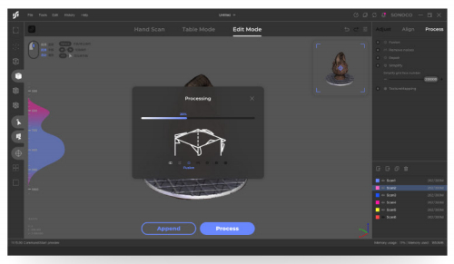 Magic Swift Plus拥有配套软件JM Studio,JM Studio具有强大的编辑模式,全自动算法模块集成,支持多位置自动对齐、自动去噪、自动孔洞填充、自动纹理映射等,赋予扫描仪应对各种专业场景的能力。
