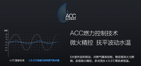 日常用水,最惧怕的就是水温忽冷忽热,它不仅会引起身体的极度不适,还容易烫伤皮肤。老板电器集43年灶具燃烧技术之大成,精研ACC燃力控制技术,以原装进口精控CPU+双电磁燃气比例阀+三阀四段技术+3.0水量伺服器+高效无氧铜热交换器5大部件实时联动,实现水温±0.5℃微幅波动,远高于±3℃国家标准,从此彻底解决温控不佳忽冷忽热的难题。
