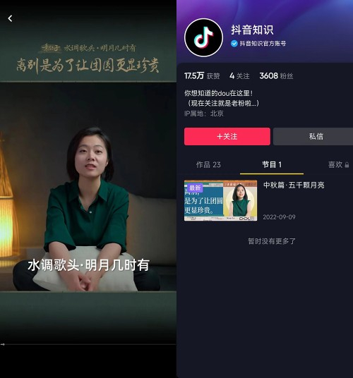 抖音《节日里的诗词盛宴》节目上线,首期讲中秋获20万点赞