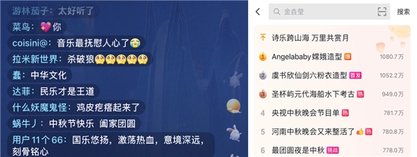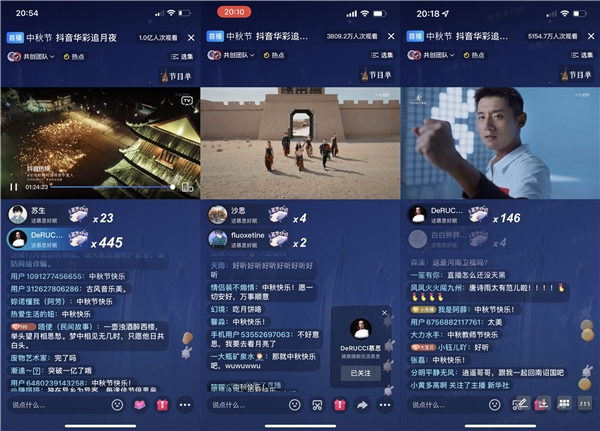 本次中秋诗乐会直播时长100分钟,共分为七个乐章,为广大网友呈现了一场满载传统文化的国风视听盛宴。在音乐方面,从开篇的《平凡之路》到结尾的《但愿人长久》,以国风之调改编的18首经典曲目诠释了“月”这一主题,不仅契合了中秋佳节“今夜月圆人尽望”的传统习俗,更彰显了国风音乐抚慰人心的震撼力量;在视觉方面,从塞外长城到烟雨江南、从西域大漠到蒙古草原,中秋诗乐会从华夏大地提取出一帧帧绝美风景,奏响“大美中国”最强音。