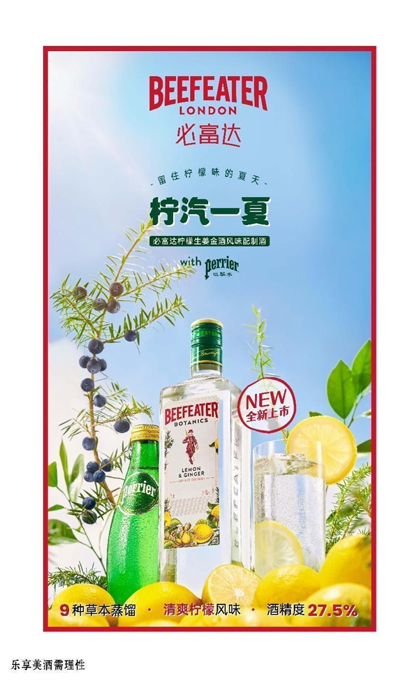 源自英国伦敦的金酒品牌Beefeater必富达,推出全新柠檬生姜金酒配制酒——“柠夏”,以品牌经典9种草本植物蒸馏,加入清爽黄柠檬风味配方,以27.5%更低酒精度并借“留住柠檬味的夏天”的品名含义,紧贴新一代消费者对都市平衡生活方式的需求,带来必富达水果金汤力等都市平衡调饮。无论是都市日常运动健身之余,或是自然户外、居家休闲、摩登欢聚,柠夏是年轻都市玩家探索自然平衡生活的陪伴。