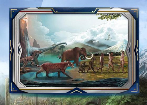 地球生命起源、恐龙霸主、人类进化演变于一幅作品中巧妙融合,地球生命演化简史被具象化。如此的构图处理,恰到好处地体现了超弦计算机“镜子”超凡且精准的模拟运算能力。