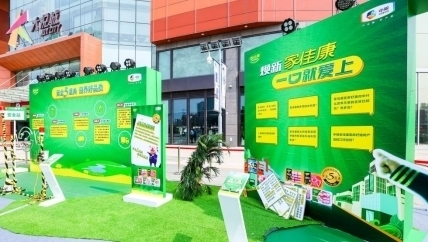 具体言之,家佳康在空间场景视觉营销上,注重保持品牌一致性,以绿色品牌色为主色调来布置整个场景空间,通过视觉上高频、大量的重复刺激,不断强化消费者对于家佳康LOGO、Slogan的记忆,以便日后在商超等场所家佳康品牌能够及时被识别;在空间场景内容营销上,则侧重家佳康“安全更健康”品牌定位的核心内容表达,以“安全”“健康”为主要锚点,创意搭建了多个功能区。