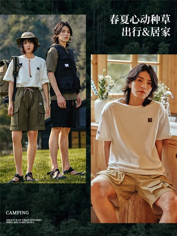 多元的搭配方式,给山系带来了独有的运动线条及随性的穿搭风格,为应对户外多变的温度环境方便穿脱,「多层叠穿」更是潮人们感兴趣的地方。经典的urban outdoor穿搭必备渔夫帽、舒适工装裤和简易背包,一件通风透气且特能装的多口袋马甲、夹克便能成为点睛之笔。塑造出独特的视觉效果,使造型更加饱满。