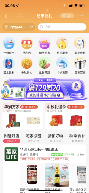 中秋节是一个阖家团圆的传统佳节,但今年中秋不少人就地过节,无法与家人团圆,随着消费习惯的变迁,“云送礼”已成为消费者表达中秋祝福的重要方式,越来越多人借助即时零售这种“线上下单,商品小时达”的新消费方式,为异地的长辈、亲友、恋人即刻送上中秋礼品,表达“遥遥千里暂未聚,但邀好礼代传情”的满满心意。