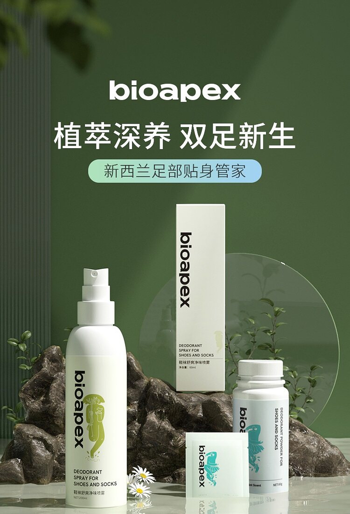 除了皮肤健康这一消费诉求,洋葱集团还关注到集中度低、增速快的足部护理市场。面对不同需求的客群,新西兰植萃足部护理保养品牌「Bioapex」推出差异化功能的新品,以新西兰溯源、温和高效的植萃配方满足消费者对产品功效的理性诉求,其倡导保养美护理念的情绪价值满足消费者的感性诉求,渗透保健、美护等生活场景。坚持安全温和的护足理念,「Bioapex」打造出日常运动系列、精致美护“小心机“系列、保健修复系列等三大产品线,创新内外兼修的进阶护足理念。