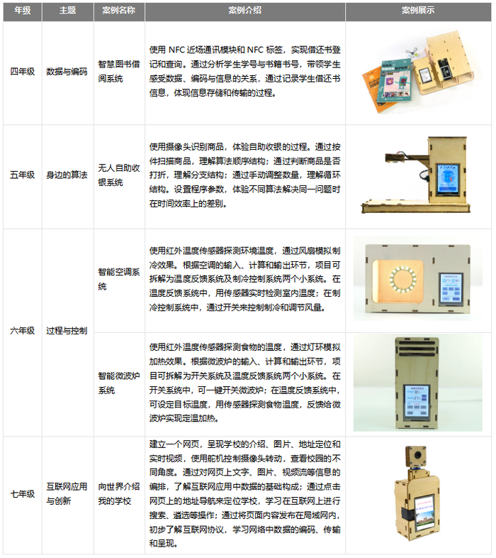 针对四年级至九年级,蘑菇云科创教育团队共设计了8个跨学科教学案例。其中,六年级和八年级各两个案例,其他年级各一个案例,案例介绍如下。