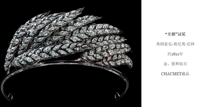 CHAUMET永远的灵感缪斯约瑟芬皇后,偏爱麦穗的意象。CHAUMET则对麦穗的不同形态甚至是品种进行入木三分的刻画,其中的代表之作“克雷沃克尔”麦穗冠冕背后,拥有一段关于冠冕家族传承的传奇佳话。