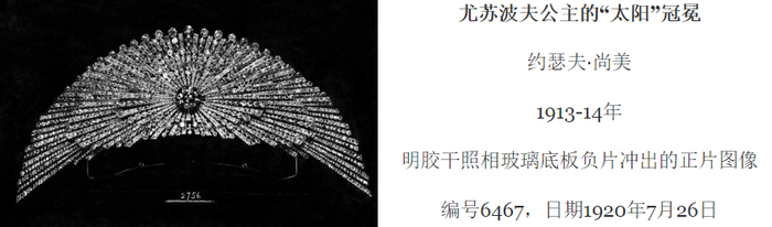 1906年,在装饰艺术风格方兴未艾之际,CHAUMET推出一款“太阳”冠冕,太阳光芒呈放射型几何图案,从冠冕中心发散而出。这款摩登入时的设计在1914年被沙俄尤苏波夫公主选中,为儿子费利克斯与沙皇侄女大公爵夫人伊丽娜的婚礼所用。这顶冠冕还吸收了俄国传统头饰“kokochnik”的灵感,硕大的中央主钻射出万道光芒,主钻周围铺满多达三层的钻石,奢华至极。这件作品也将太阳的光芒喷薄的力量悉数描绘,标志着冠冕史上的一座高峰。