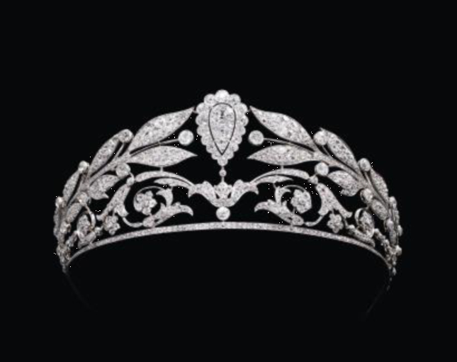 这顶冠冕是拿破仑一世送给斯特拉斯堡(Strasbourg)外交官、莫斯利伯爵奥托(Otto)的礼物。麦穗图案作为罗马神话中丰收女神色列斯的标志,深受法国王室的喜爱,约瑟芬皇后就拥有众多麦穗主题的珠宝。一件珠宝在同一个家族中保存了两百多年,这种故事鲜少发生。而更为罕见的是,在经历了数个世纪之后,这件作品在克雷沃克尔家族中传承四代之后,由家族后人于1910年送回CHAUMET进行改制。CHAUMET为改造后的冠冕注入了现代气息,由六根麦穗组成的冠冕更加轻盈,下方有蜿蜒的枝梗,从两侧逐渐上升,在中央的顶点上汇聚,同时麦穗亦可以拆卸转化为胸针。这款在“美好时代”重新演绎经典主题的杰作,完美体现了CHAUMET细腻精湛的手工技艺与对麦穗主题的熟稔把握,令世世代代的克雷沃克尔家族女性成员爱不释手,经常在各种重要场合佩戴。