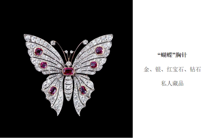 1904年美国圣路易国际博览会上,法国海外展会委员会第31组珠宝类报告撰写人在其总结中,对CHAUMET参展作品赞不绝口:“丰富的展品、绝美的宝石、光彩迷人的珍珠、精致的切工、巧妙的镶嵌、纤细的托座、无微不至的精工装饰、纯正的风格和新颖的设计,一切都达到了罕见的完美境界”。他特别提及了其中最出色的作品,包括一只“双翼边缘镶嵌精致切割红宝石的优雅蝴蝶”。