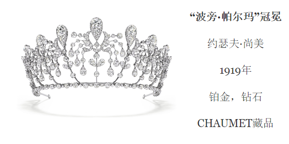 在大自然中,花朵几乎是所有珠宝品牌进行自然主义创作的首选对象。CHAUMET代表作“波旁·帕尔玛”冠冕(又名金钟花冠冕),是“花朵界”珠宝的集大成之作,也是“冠冕界”的巅峰传奇,它的出现标志着世界上第一顶铂金冠冕的诞生。
