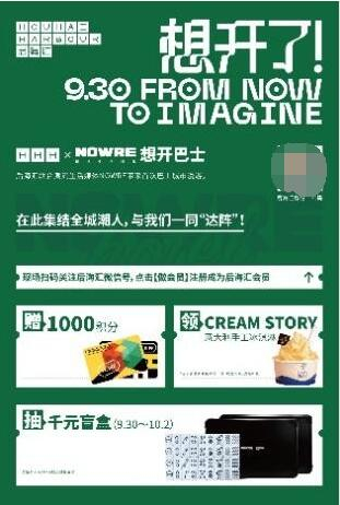 后海汇即将与NOWRE联合开展首次“HHH×NOWRE巴士城市漫游”企划,以潮流巴士为媒介,漫游深圳各大城市地标,并与意大利手工冰淇凌CREAMSTORY合作发放限定版冰淇凌。据悉,亮相后的后海汇也将继续和青年玩在一起,开展系列潮流、音乐、运动青年社群活动。