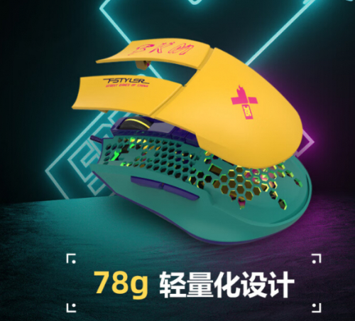 这款鼠标的主体颜色为四位导师战队的代表色,并以导师战队王一博 “一波王炸”、韩庚 “态度大师”、李承铉 “幸运派对”、刘雨昕“全昕势力”名称命名。鼠标上盖特别设计有战队名称,酷炫十足,让这款鼠标光是在外观就自带街舞潮玩buff加成!同时,这款鼠标的体量也像舞蹈般轻盈灵活,采用了轻量化设计,让重量仅仅78g,而且鼠标线身及脚垫部位也进行了移动阻力之改良,轻量化设计使鼠身握感轻灵,移动灵顺降低手部疲劳。