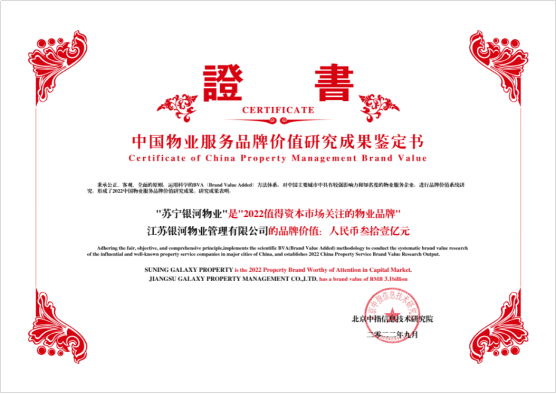 2022物业品牌价值发布,苏宁银河物业再获殊荣