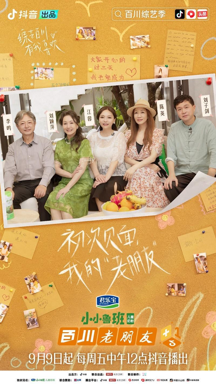 《百川综艺季》由抖音出品,北京卫视、江苏卫视联合出品,君乐宝小小鲁班儿童奶粉独家冠名、立邦联合赞助,第三档子节目《百川老朋友》下期将于9月16日(周五)12:00在抖音上线,北京卫视将于9月16日(周五)20:20同步播出长沙老朋友驿站,9月18日(周日)21:45播出北京老朋友驿站。