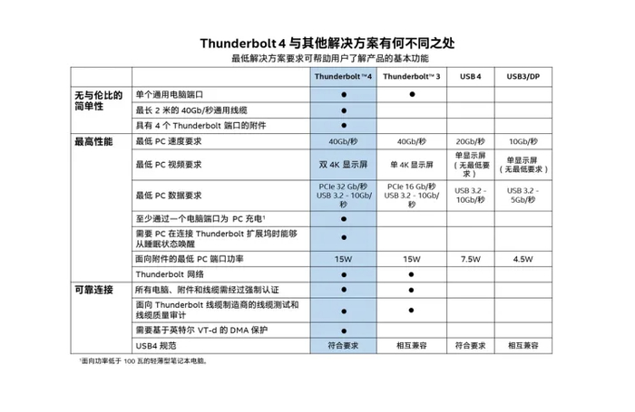 相比Thunderbolt 3,最低PC视频规格和最低PC数据规格的要求提高一倍。