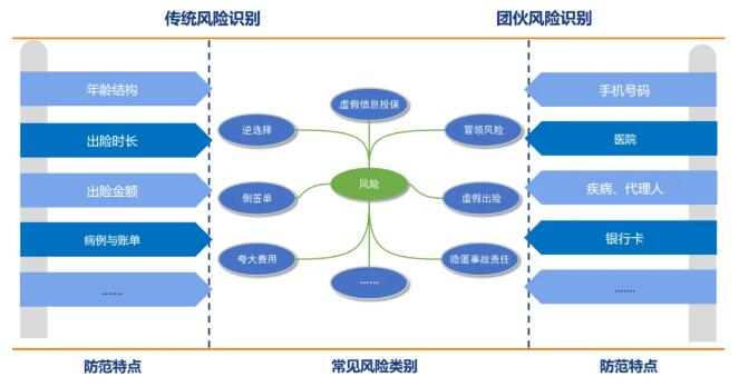 再有是医保欺诈,我们一般会更多地关注医患或供应商不正当的关系,一旦在某个药品或疾病上出现了大量的离散值,就代表是欺诈行为——这是以往判断个体欺诈的常用办法,但现在团伙欺诈问题非常严重,比如几十个人都通过个别支付账户去买相同的药品;还有账户层面的聚集以及很多其他的共性。结合图分析和算法,都可以识别这些团伙案件行为。