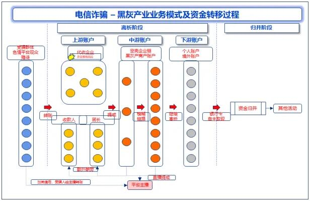 左边那幅图其实就是涉赌涉诈资金的转移过程,最左边是赌徒的充值,上游这几步可能会重复多个层级,到了中游,各种空壳企业会进行各种各样的资金搬运,夹杂着一些空壳企业的分批启用,或者跨行转账行为,造成资金链路的进一步模糊;之后就是资金洗牌的最后一步,钱会转移到一些个人账户进行分散提现,或者直接就在游戏/直播平台进行一些打赏。总之,下游洗白的方式是多种多样的,但通过图谱再结合一些特征,还是能够进行监控的。