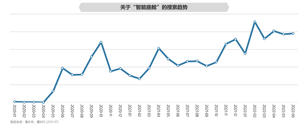 在此影响下,新能源汽车正在潜移默化地淡化“汽车”的概念,“智能空间”“智能座舱”成为新的表述方式。数据显示,“智能座舱”这一关键词在懂车帝上的搜索量呈现快速增长,新能源汽车潜在用户对智能化、空间、内饰的关注高于传统能源汽车。