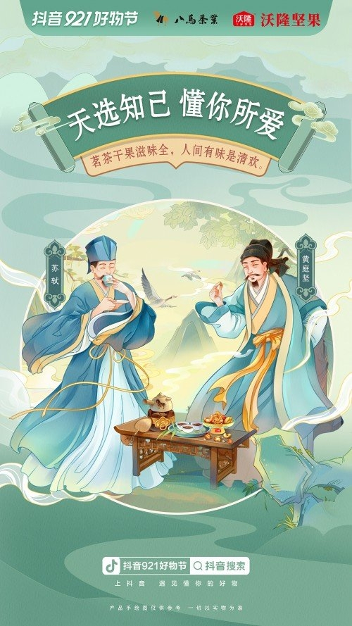 此款礼盒,以苏轼、黄庭坚之间流传千古的知己情谊为概念,将健康好吃的坚果与健康的茶叶组合,让消费者吃坚果,品茶香,品尝好物的同时,感受知己间的绝美友谊。