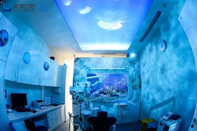 客户进入体验诊间,可利用Leap Motion体感控制器,让自己仿佛亲自驾驶太空飞船,置身于深海光影斑驳的海洋星球。不仅如此,诊疗室内其他的科技装置,也可让诊疗客户的听觉、嗅觉、味觉、触觉等都产生丰富感知,耳边是轻浪拍岸的海音,鼻间是淡淡海水味,体感徐徐舒爽。这一切新奇体验都源于诊间内的互动设备,配合相关“黑科技”,可充分调动人体五感六觉,最大可能的纾解看牙焦虑。