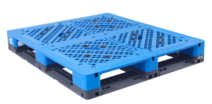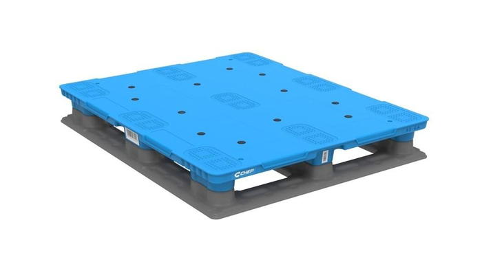 P1210V蓝盾二代塑料托盘:国标1210尺寸,静载4.5吨,动载1.5吨,货架荷载1.5吨;采用的超高分子量HDPE材料,抗冲击强度升级,更轻量化,操作更便捷安全;平面设计, 便于清洁,满足货物存放卫生要求; 24个防滑垫及12个防滑块设计,吸塑工艺破损不延展,确保货物及人员安全。适用于各种仓储设备和自动化产线,适用(-30°C~ 70°C)不同温度环境,寿命更长。