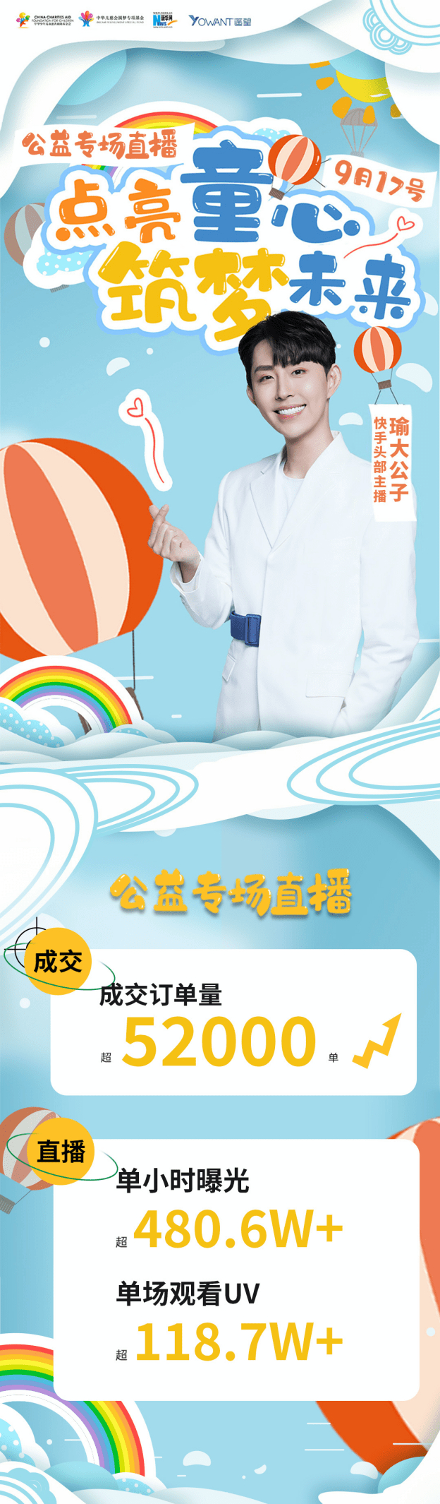 9月17日,新华网、中华儿慈会联合快手头部主播瑜大公子发起“点亮童心 筑梦未来”公益专场直播,呼吁大家共同关注儿童公益,为贫困地区的孩子献一份爱心。