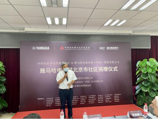 中国老龄事业发展基金会副秘书长夏超表示:我代表中国老龄事业发展基金会向北京市民政局以及雅马哈乐器音响(中国)投资有限公司 和 北京盛世雅歌琴行有限公司对文化养老公益行动的大力支持表示衷心感谢;向获得雅马哈电子琴捐赠,并荣获“红枫家苑”称号的社区表示热烈祝贺!老基会是国家卫生健康委员会领导下的,为老年人服务的全国性慈善组织。2020年底,为了丰富老年人精神文化生活、老基会开展了“文化养老公益行动”,并通过红枫学堂线上学习平台以及线下文体团队等方式,为老年人提供文化养老服务。社区是老年人居住生活的主要场所。我会在雅马哈乐器音响(中国)投资有限公司的支持下,向北京45个社区捐赠电子琴设备,并建立社区“红枫家苑”。希望受赠社区要把电子琴用好,把“红枫家苑”办好,让老年人在文化养老公益行动中拥有更多的幸福感和获得感。
