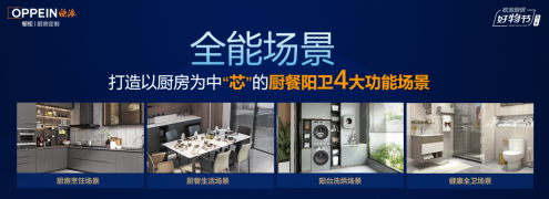 “欧派厨房+”战略,传承欧派橱柜28年专业定制基因,以厨房为中心,突破定制边界,延伸厨餐阳卫空间,打造厨餐一体、柜电一体、厨卫一体多功能生活场景的一站式全能定制解决方案。