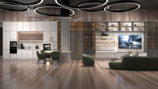 值得一提的是,在向餐厅延伸的策略中,欧派橱柜在去年的“1房2厨”概念上,结合终端反馈,全面升级为百变中西厨,将厨房空间延伸至厨房以外,包括餐厅、客厅、玄关等等。除了美食烹饪以外,消费者可以实现轻办公、社交、休闲娱乐等,满足更多生活需求,提升居住品质和家庭情趣。