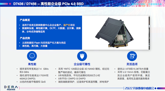 如今,人工智能、大数据应用对带宽要求越来越高,大概能占到50%以上的新增带宽。针对这些业务,得瑞DERA此次推出的D7436/D7456系列SSD产品为效率提升提供保障,以支撑大数据和人工智能的应用,实现更佳的能耗比,保证支撑系统供应的同时,满足数据中心绿色低碳的要求。