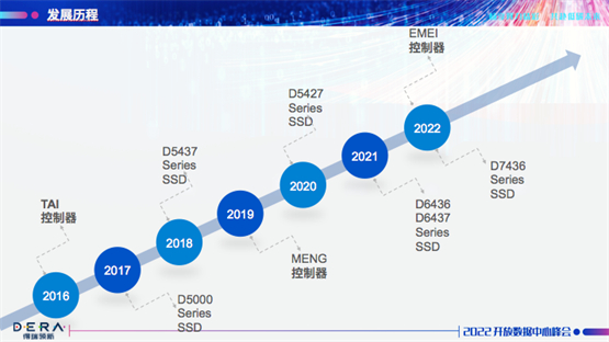 纵观每一代控制器产品,得瑞DERA都以山来命名,也赋予了其产品使命。继2016年TAI控制器、2019年MENG控制器之后,今年重磅推出EMEI控制器,是得瑞自主研发的第三代数据中心级NVMe SSD控制器,也是首款支持PCIe 4.0的企业级主控。康雷表示,EMEI之后的PCIe 5.0主控SONG将于明年下半年推出。每代主控均为一次流片成功,且对应过程中成功研发5代SSD模组产品,不同子型号选择适配不同NAND,并保证每一代都有新功能开发,以应对当下的市场需求。