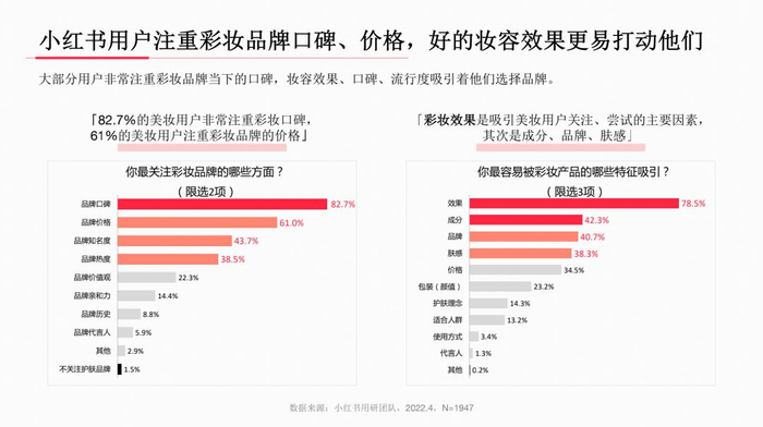 根据报告数据显示,小红书是美妆用户获取美妆内容的「重要心智渠道」,82.5%的美妆用户首选小红书了解美妆个护内容。
