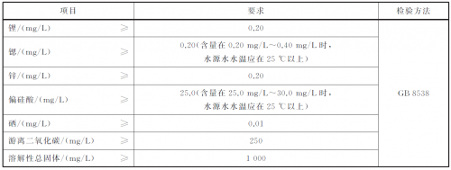 此外,天然矿泉水还需要满足国家饮用天然矿泉水GB8537的国标要求,包括感官要求、理化指标、污染物限量、微生物限量、食品添加剂等五个方面。在此基础之上,必须有一项或以上指标(下表)符合规定才可以成为天然矿泉水,极为不易。