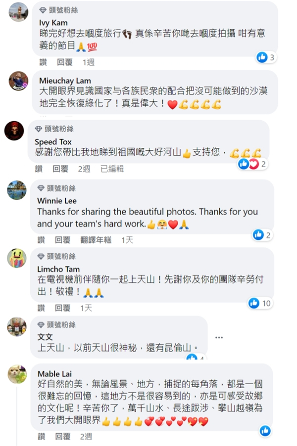 尤其此前对内地了解甚少的香港网友,看完节目后纷纷表示大开眼界,留言称“很想去旅游打卡这些地方,亲眼看看祖国的大好河山”。此外,更有香港网友给陈贝儿提出建议,“《无穷之路2:无价之保》之后,不如再来拍个第三季《无尽之天》,讲祖国航天之路!”这些积极热烈的反馈,体现的正是香港观众对祖国发展的关注,对内地主题节目的认可与支持。