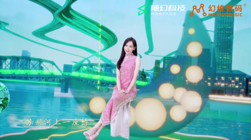 《苏州河上一座桥》节目中,节目组将苏州河周边的33座桥以及周边标志性建筑在C4D中进行了完整建模,随后导入UE系统进行XR场景设计,该节目同一场景包含的模型数量之巨大可谓业内首创。更为惊艳的是,在随幻的绿幕XR拍摄技术下,坐在绿幕中的表演者唐嫣实时的融合进了整个动态的虚拟空间中,无论虚拟空间如何的旋转、穿梭和摇移,表演者在虚拟空间中的相对位置和光照都符合实际的自然物理规律,呈现出一种介于真实和虚幻之间的沉浸式感受。