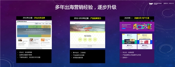 在跨境营销领域,万兴科技从公司成立初期就快速扩张,逐渐摸索出以本土化运营为基础的全球运营模式,以及产品品牌与企业品牌齐头并进的品效合一的品牌营销方法。