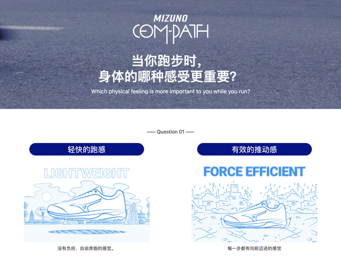 想选一双可以兼顾性能/舒适的跑鞋,在了解MIZUNO新上市三款跑鞋和搭载的WAVE科技之后, 线上需求Q&A系统帮助找到专属于你的舒适跑鞋。