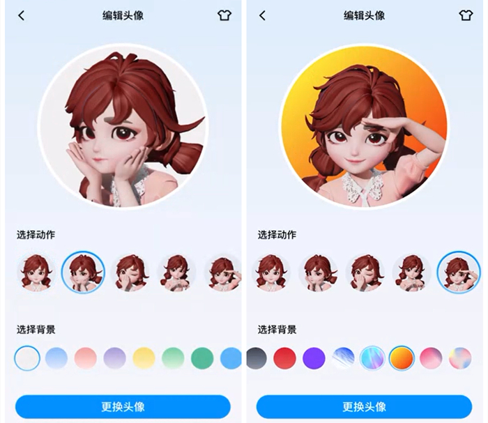 除此之外,结合超级QQ秀的形象,QQ还上线了9款新的头像,动作状态俏皮可爱,也支持不同的背景选择。当然,无论是上面的表情包,或者是这些头像的面部状态也都是可以根据个人喜好进行DIY,如果对自己的形象产生新灵感的话,可以跳转到超级QQ秀更换新形象,从发型到服饰,从眼妆到唇妆,从上到下,从头到尾,各种衣服、头发、妆容随意搭配,心目中的崽分分钟拿下。