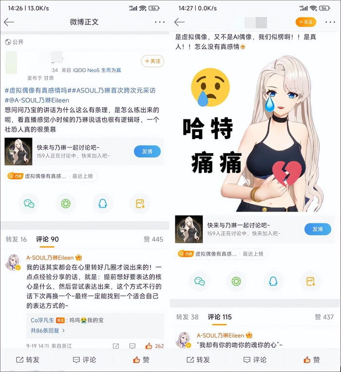 虚拟偶像大家应该都不会陌生,已经越来越深入我们生活,越来越被大众接受,虚拟偶像凭借自己的独特优势,获得了不少人关注,尤其是A-SOUL,出道以来圈粉无数。近日,乃琳首次接受跨次元采访,采访内容及互动回复再次冲上热搜。虚拟偶像不就是AI吗?虚拟偶像有真感情吗?乃琳在这次采访中直面大众对于虚拟偶像行业的种种不解,给出了自己的回答。