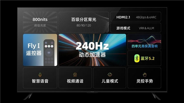 作为雷鸟突破转型的一代产品,鹤6Pro主要聚焦八大功能点:240HZ动态加速器、四单元高保真音响、FlyⅠ自定义遥控器、蓝牙5.2、智慧语音、视频通话、儿童模式、灵控手势,在电视智能化的体验升级上诚意满满。而在各路玩家按头安利高刷电视之际,抢先布局未来的 “240Hz动态加速器”不失为一大亮点,全局生效,不管是连接任意支持240Hz信号输出的外设,还是观看自带的在线片源,都能一键实现超高刷的体验。值得一提的是,雷鸟集广大用户之力,历时一年打造的FlyⅠ自定义遥控器,在侧面增加了亮度调节键,不用再去电视设置里面一个菜单一个菜单点开找选项,随时随地手指轻按就可以调节亮度;除此之外,还设计了三个自定义键,可以一键转换任何想要观看的节目或者功能,真正让用户感受到“手随心动,自由操控”的快乐,这款遥控器可以说是雷鸟用户意志汇聚的体现,真正代表了用户在雷鸟心目中的地位。为了更好地回馈用户,在本次发布会上,雷鸟还宣布了专属福利活动,FlyⅠ自定义遥控器从99元直降到了39元,有需要的用户可以直接到FFALCON雷鸟官方店铺下单购买。