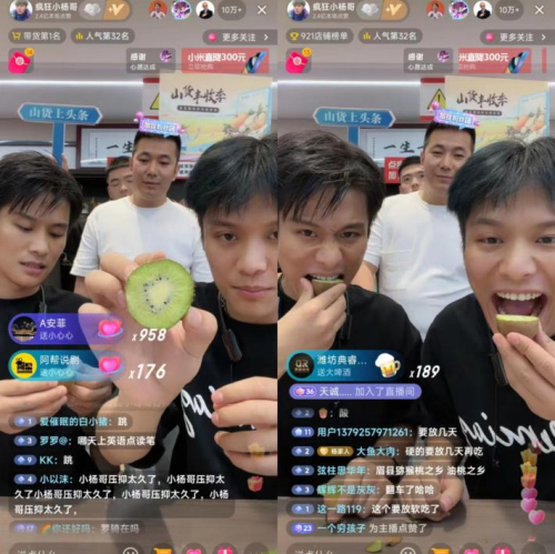 “你看我吃这个猕猴桃,一口吃完,皮能完好的吐出来。”直播现场,小杨哥用直观形象的方式向观众展示了猕猴桃的饱满多汁,直播间售出的48个猕猴桃包邮也才50元不到。“兄弟们!这是我们‘山货上头条’优选的陕西特色农产品,希望大家喜欢吃猕猴桃的多多支持,绝对比进口的好吃一万倍。”之后,小杨哥还详细介绍了猕猴桃的种植过程、外形、口味、包装等情况。