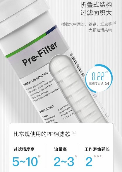 净水器的使用原理,究其根本,是通过多重滤芯,将水进行层层净化,从而去除杂质,而这对滤芯提出了很高的要求,高品质的滤芯,不仅能够有效去除重金属等有害物质,同时还可保留有益矿物质。来自美国的森乐QCS318直饮机,采用三层过滤芯,其原装进口的高密度聚丙烯折叠滤芯,独特的折叠式结构能够大大增加过滤面积,有效拦截水中的铁锈泥沙等杂质,更有过滤精度高达0.01微米的UF超滤膜滤芯,细菌病毒无所遁形,真正达到“净水”的目的。
