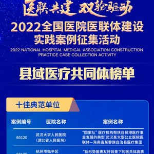2022全国医院医联体建设实践案例征集活动旨在加强医联体建设经验交流分享,推进分级诊疗制度落实,助力实现各级医院高质量发展。案例征集活动分为“城市医疗集团”、“县域医疗共同体”、“跨区域专科联盟”和“远程医疗协作网”四个主题模块。