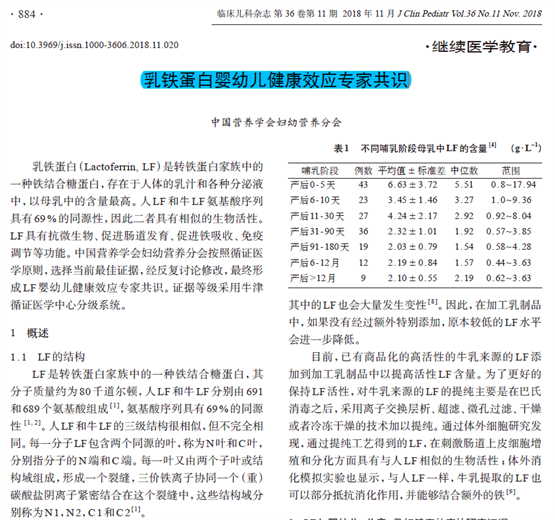 2018年11月,中国营养学会妇幼营养分会发布《乳铁蛋白婴幼儿健康效应专家共识》(以下简称《乳铁蛋白共识》),这是中国营养学会妇幼营养分会首次发布针对婴幼儿喂养中有关功能性食物成分的建议。