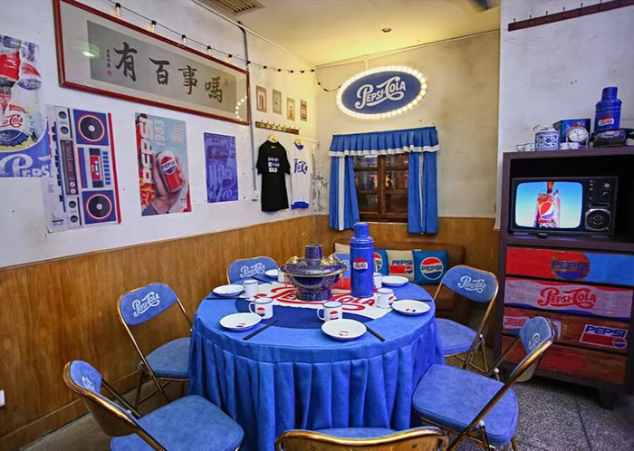此外,百事还与头部地域美食品牌开展门店合作,打造新奇美食体验。如联合长沙文和友总店打造老长沙限定包间——“包你百事可乐屋”,复刻经典的地域烟火气息,带来线下佐餐升级体验。