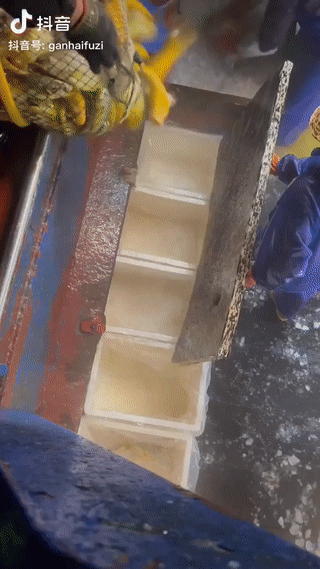在张序剑的抖音视频里,一筐筐大黄鱼被捕捞上来,活蹦乱跳。