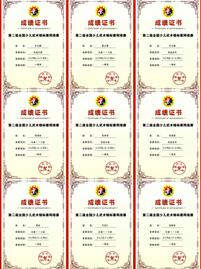 第二届全国少儿武术锦标赛官方成绩公布如下: