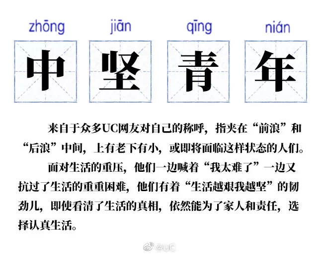 “中坚青年”一词是两年前在UC端内火起来的,而从此就被UC和自身品牌进行了深度绑定。“生活越艰我越坚“这种专属于中坚青年的态度,凝聚了80、90后这批夹在前浪和后浪之间的“中间青年”的共同缩影,也与UC的核心用户特质不谋而合。